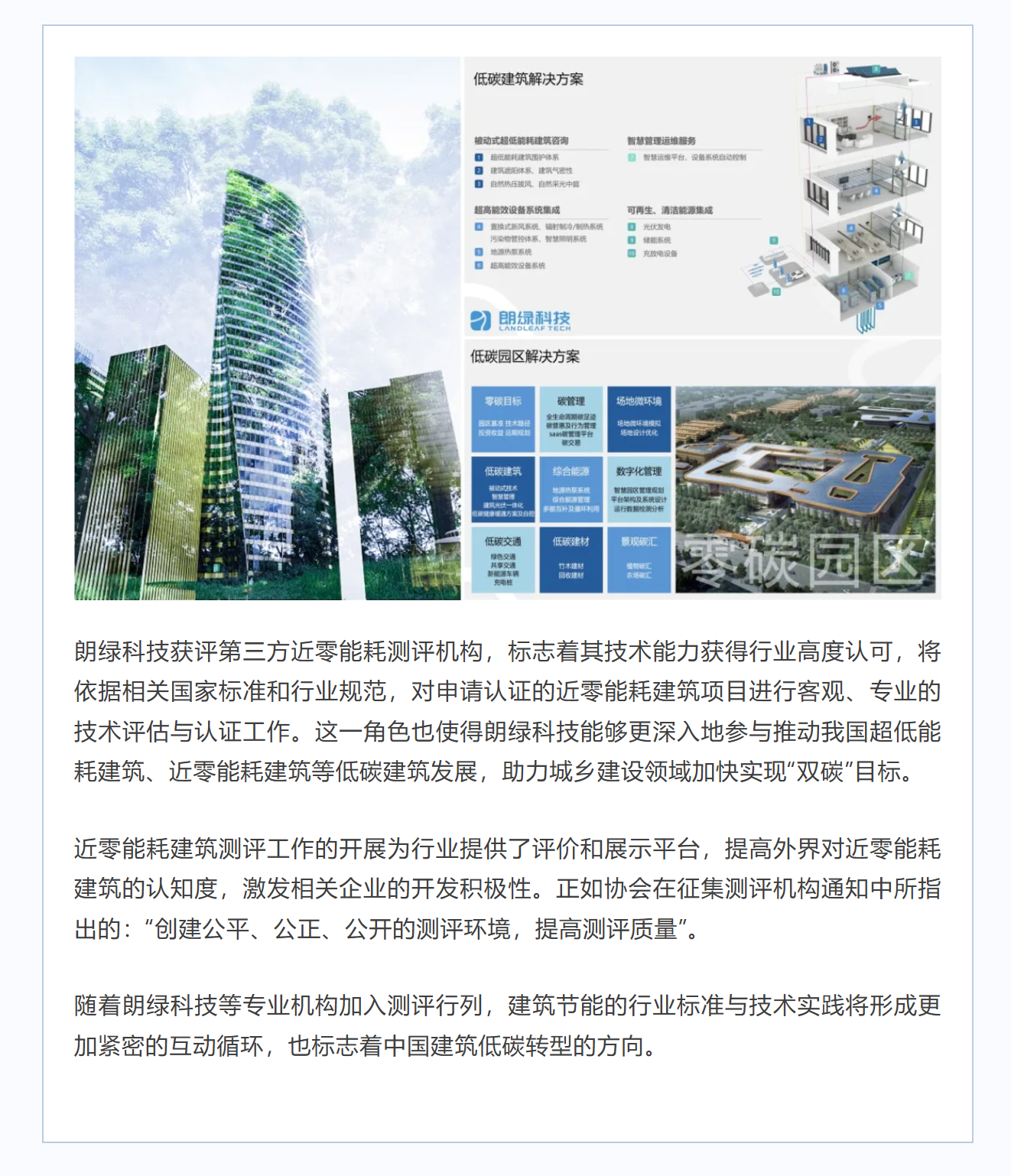 朗綠科技的技術權威性不僅體現(xiàn)于測評資質(zhì),更源于其深度參與行業(yè)標準建設。這些實踐使朗綠科技在評估和實現(xiàn)建筑與園區(qū)節(jié)能目標時更具專業(yè)性:既掌握標準制定的理論高度,又具備項目落地的技術深度。在評估近零能耗項目時,對《近零能耗建筑測評標準》的應用更具實操經(jīng)驗。