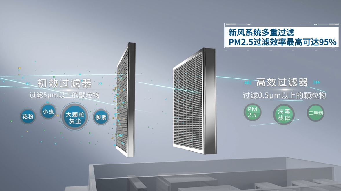 新風(fēng)機對進(jìn)入室內(nèi)的空氣進(jìn)行高效除霾